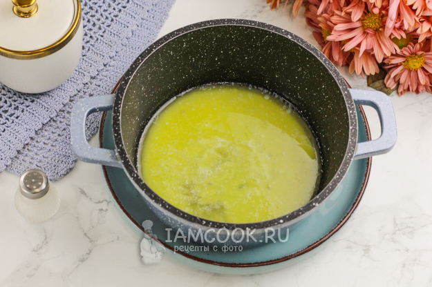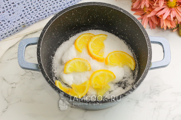 В это время из сахара, воды и ломтиков лимона сварите сироп.