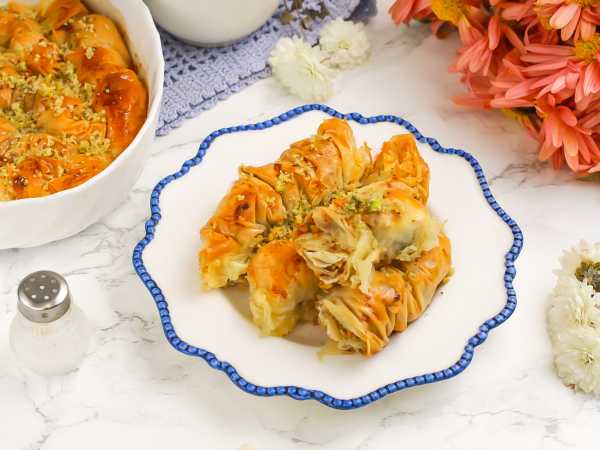 Выложите несколько рулетиков на тарелку и насладитесь вкусом приготовленного десерта. Пахлава с фисташками полностью готова!