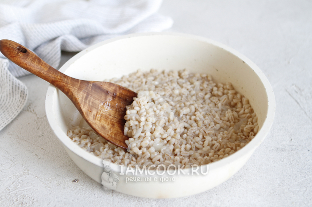 Убавьте огонь и варите перловку 40-45 минут, до полной ее готовности.
