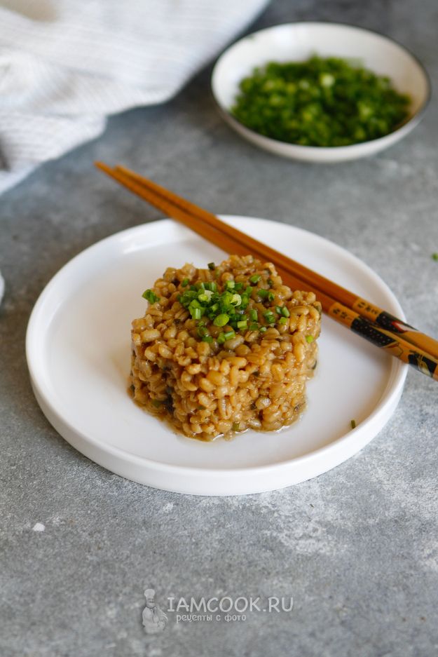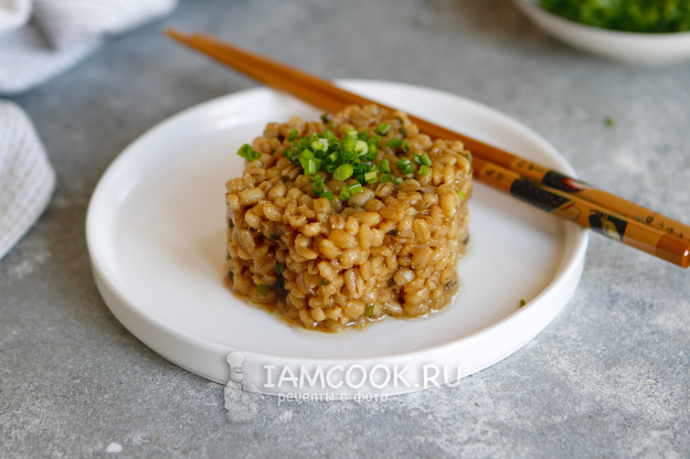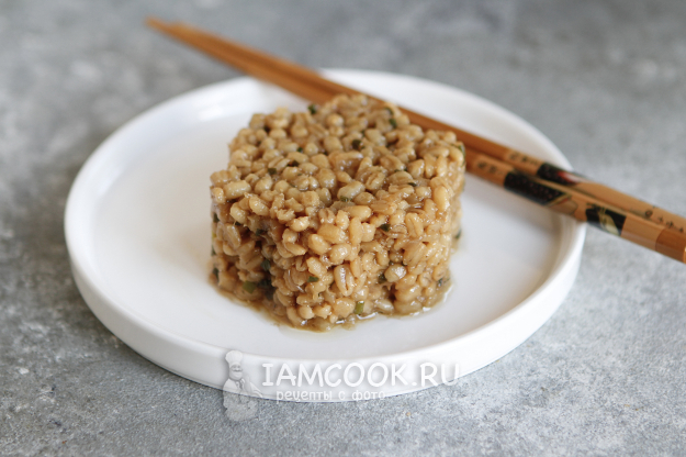 Разложите перловку с соевым соусом по порционным тарелкам и подавайте к столу.