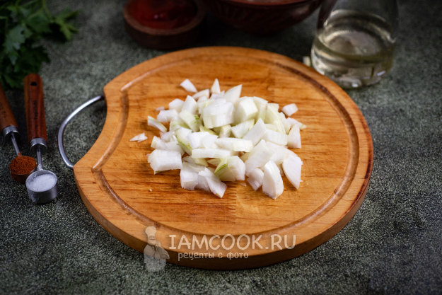 Репчатый лук мелко нашинкуйте.