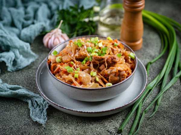 Разложите горячий бигус по порционным тарелкам и подавайте к столу, чуть присыпав мелко порубленной свежей зеленью. Приятного аппетита!