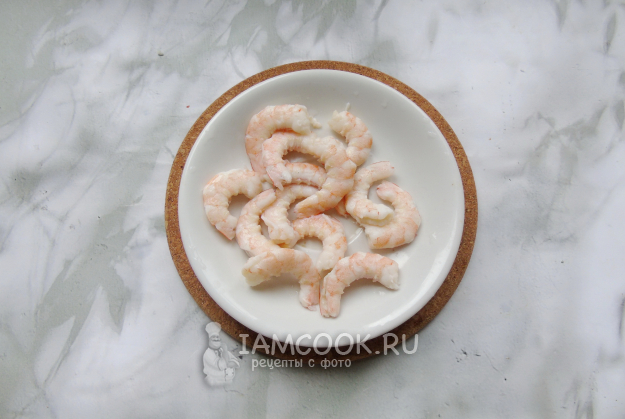 А пока суп варится, варено-мороженые креветки залейте кипятком и дайте постоять 10 минут. После промойте в чистой воде и очистите от панциря и кишечной вены.