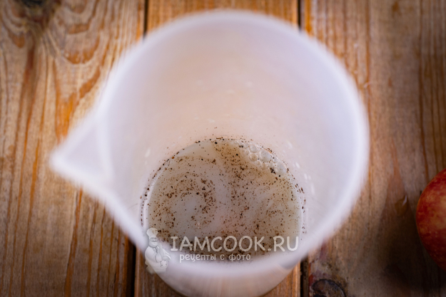 Приготовьте постный майонез. В высокий стакан для взбивания залейте аквафабу, добавьте горчицу, соль, черный молотый перец и уксус. Блендером перемешайте эти ингредиенты до побеления смеси.
