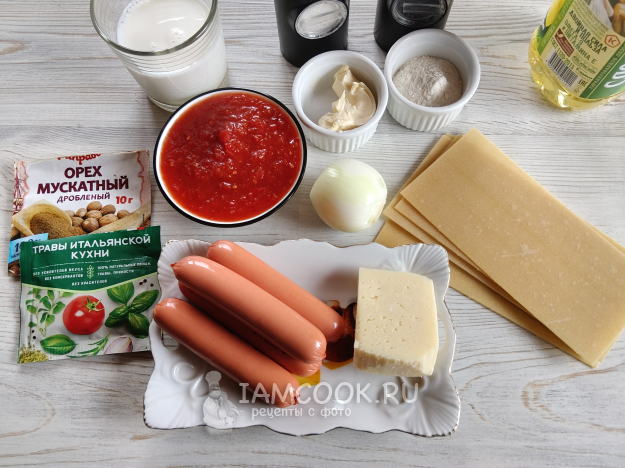 Лазанью с сосисками я делала из таких ингредиентов.