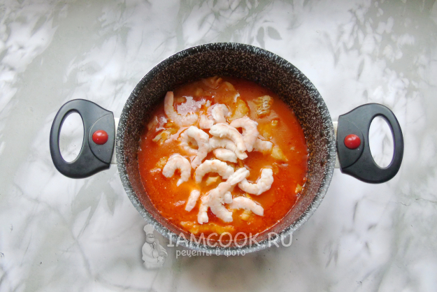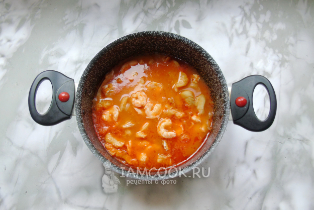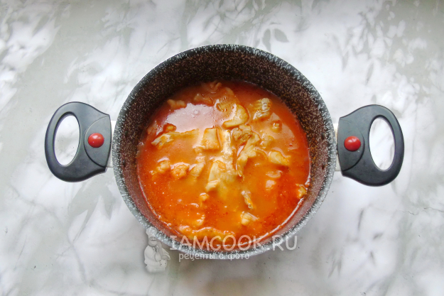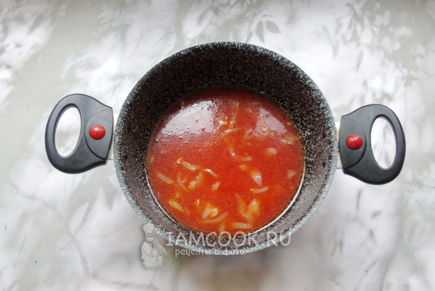 Налейте воду и перемешайте все эти ингредиенты. Накройте кастрюлю крышкой и варите соус 5-7 минут.