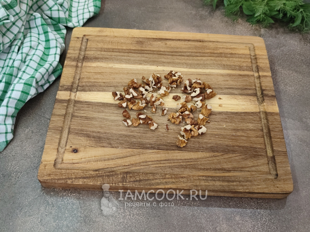 Орехи очистите, крупно порубите ножом или разломайте руками.