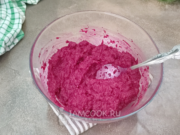 Соедините свеклу с заправкой, перемешайте, попробуйте, при необходимости добавьте соли.