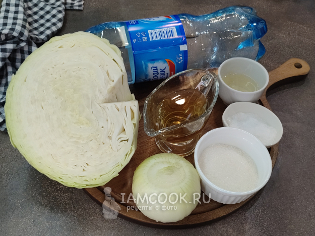 Соберите ингредиенты для приготовления маринованной капусты по-немецки. Маринад варить сегодня не будем, вместо этого возьмем обычную газированную воду.
