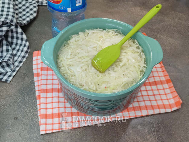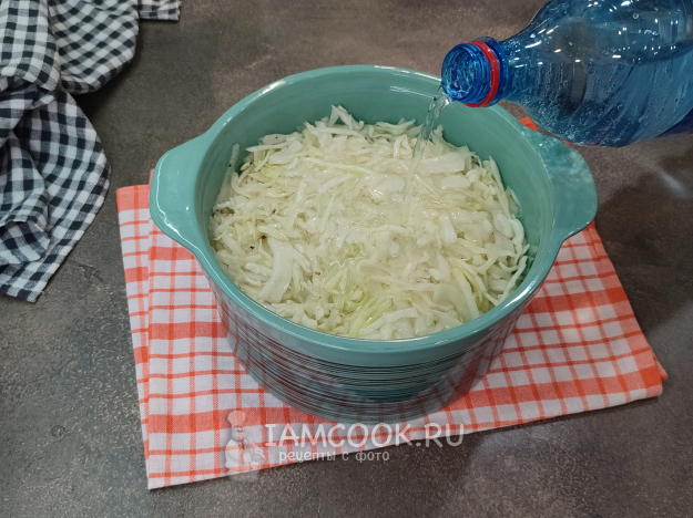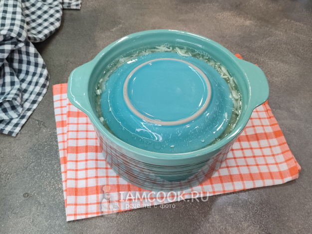 Вода должна быть примерно на 1 см выше уровня капусты.