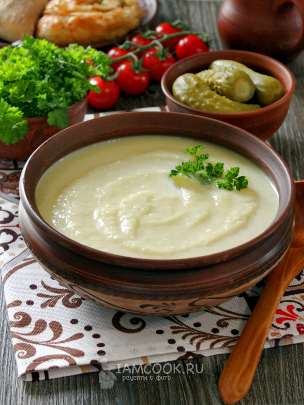 С лука слейте бульон и сделайте пюре при помощи погружной насадки блендера или ножами в чаше блендера. Оно получается жидковатым, даже если ещё и поотжать лук.