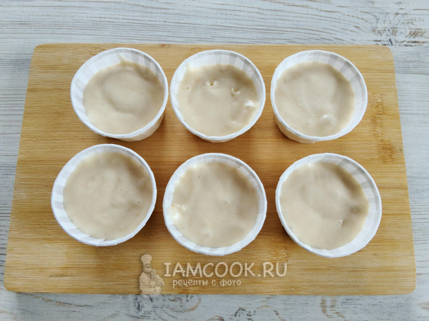 Разложить тесто в формочки, бумажные или силиконовые, не доходя до края.