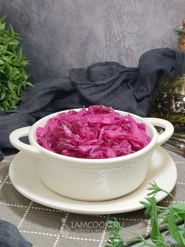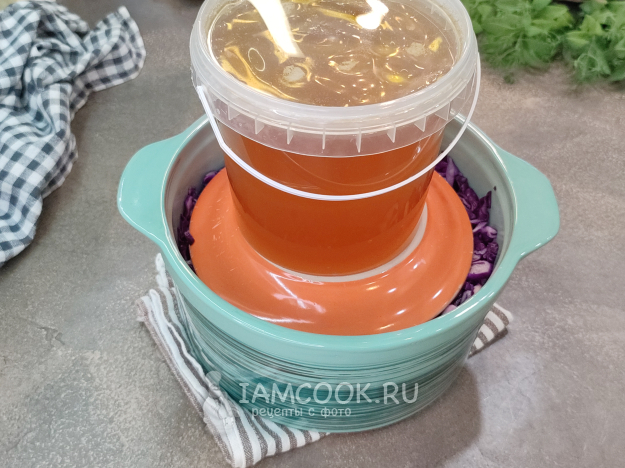 В данном случае капуста будет красить, как свекла, поэтому в идеале взять стеклянную или керамическую посуду.