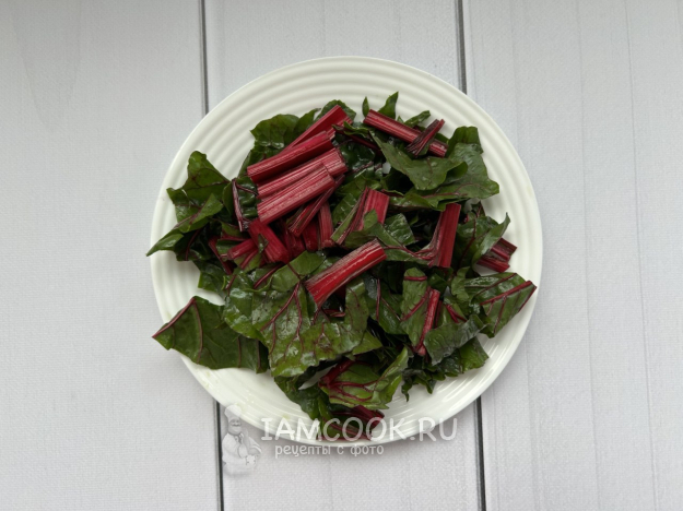 Переберите и тщательно промойте свекольную ботву. Разрежьте ее на части.