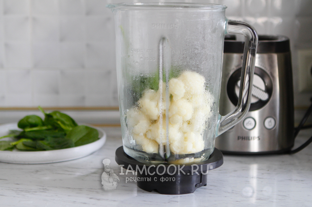 Соцветия цветной капусты и листья шпината переложите в чашу блендера.
