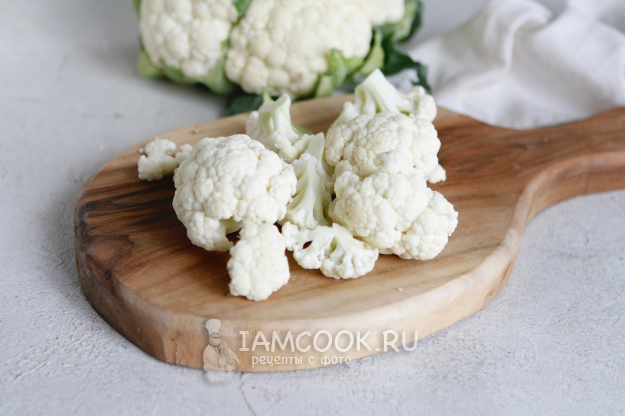 Цветную капусту разделите на соцветия и хорошо промойте под проточной водой.