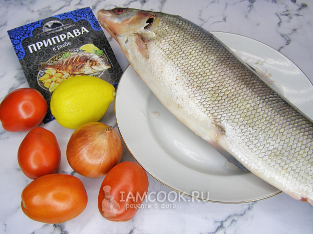 Подготовим необходимые продукты для запекания муксуна в духовке целиком. Обратите внимание на состав приправы для рыбы - если она не содержит соль, то её нужно добавить отдельно, примерно 1 чайную ложку.