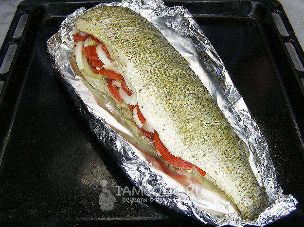 Подготовленную рыбу выкладываем в смазанную растительным маслом форму подходящего размера. Если такой формы нет, можно сформировать её из фольги, также смазав маслом, и положить на противень.