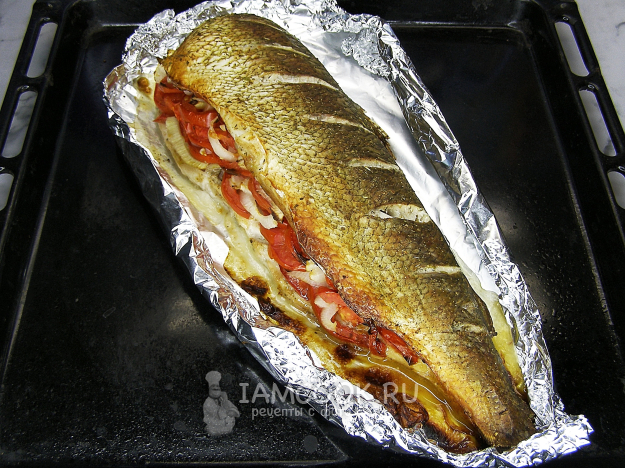 Запекаем фаршированного муксуна в духовке, прогретой до 180 градусов, примерно 30 минут, до образования золотистой корочки.