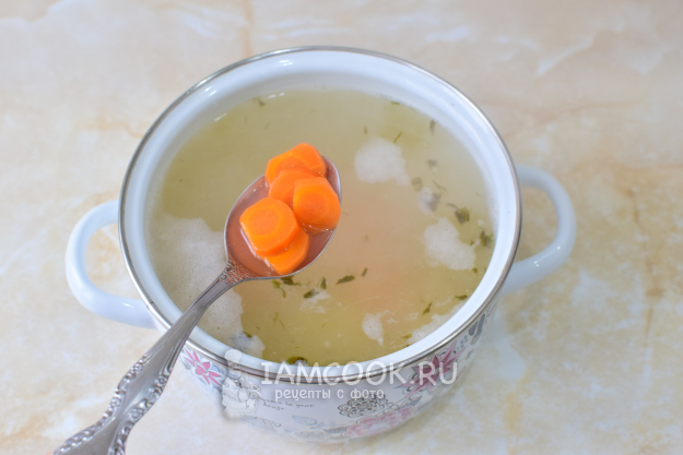 Затем добавьте в кастрюлю лавровый лист, очищенный лук и морковь. Оставьте еще минут на 10-15.