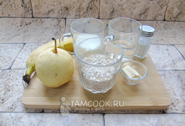 Все ингредиенты для приготовления овсяной каши с грушей и бананом - перед вами, на фото.