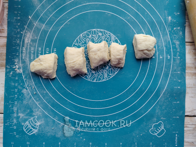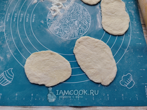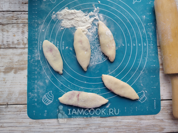 Каждый кусочек раскатать в овальный пласт.