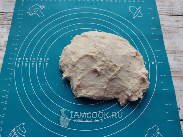 Тесто обмять и выложить на подсыпанный мукой коврик.