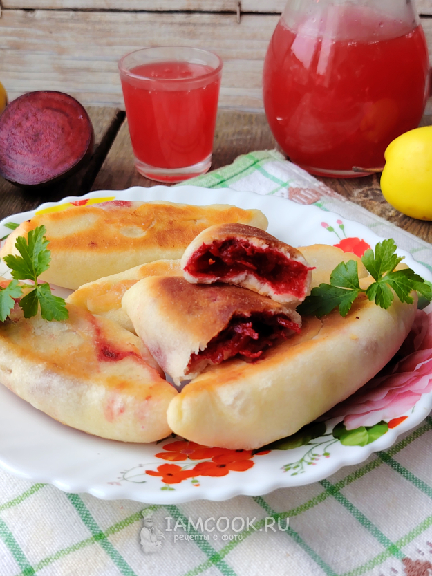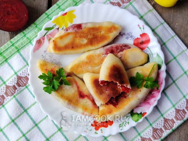 На сковороде разогреть масло, выложить заготовки пирожков. Обжарить их до румяности с обеих сторон. Сковороду накрыть крышкой, жарить пирожки со свеклой и яблоком около 5-7 минут под крышкой.