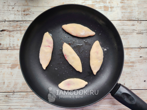 Скрепить плотно края, чтобы сок не начал вытекать из пирожков при жарке.