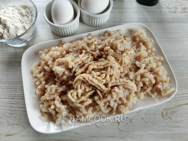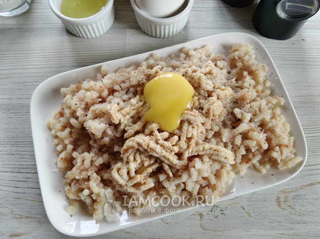 Перекрутить рыбу в мясорубке вместе с хлебом (его надо тоже отжать).