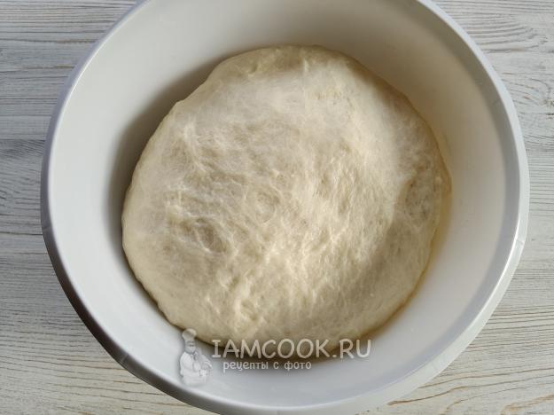 Накрыть тесто и убрать в тёплое место до увеличения в размере.