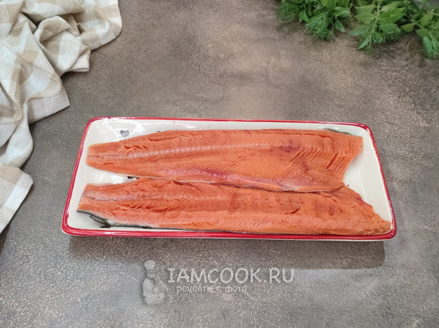 Рыбу будем использовать с кожей, поэтому очищаем от чешуи, пластуем, удаляем кости.