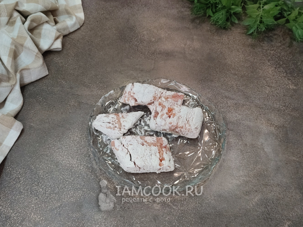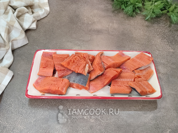 Разрежьте филе на довольно крупные кусочки, размером примерно на 2-3 укуса.