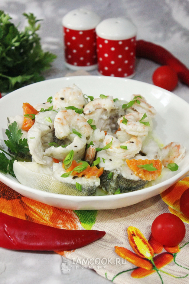 Судак с креветками готов.