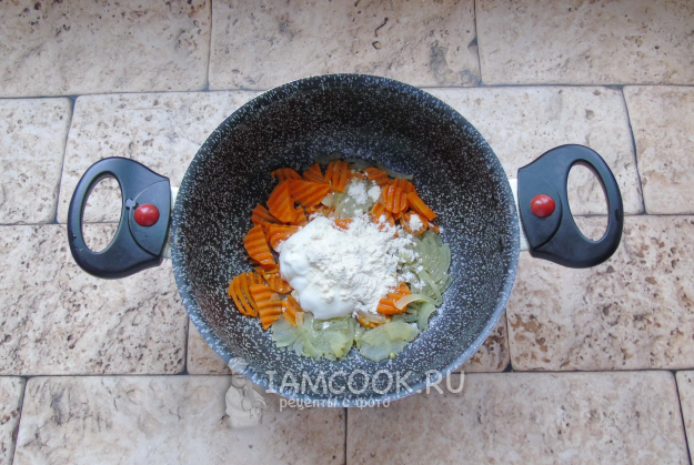 После добавьте сметану и муку.