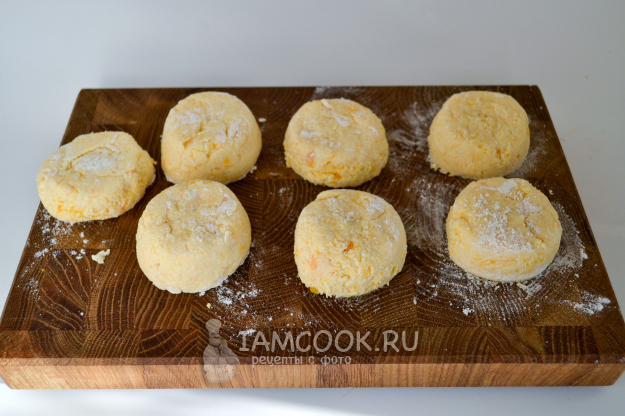 Обкатайте заготовки в пшеничной муке с обеих сторон.