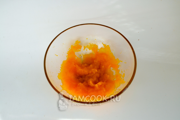Мягкие кусочки разомните блендером или толкушкой до пюре. Оставьте пару ложек пюре для приготовления тыквенного крема, а все остальное пюре положите в миску.