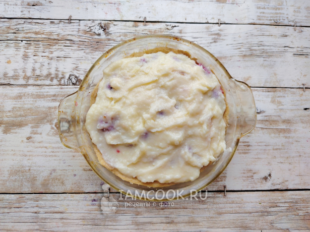 Сверху выложить крем. Отправить снова в духовку при том же температурном режиме еще на 25 минут.
