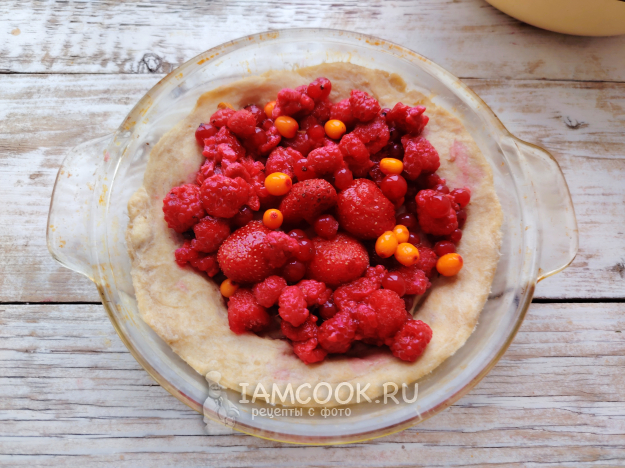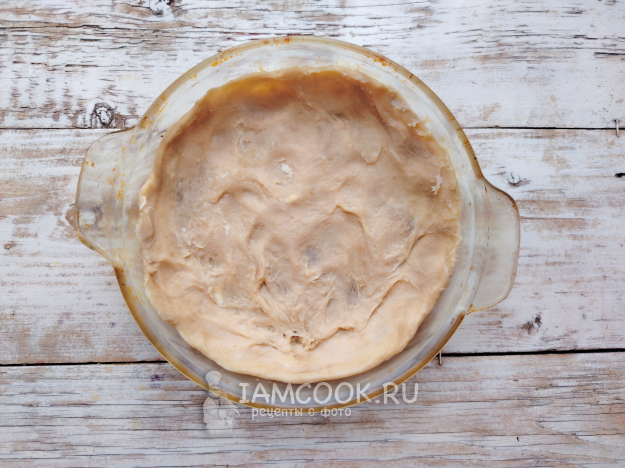 Охладившееся тесто становится более пластичным. Руками растянуть его по дну и бортикам формы для выпекания пирога. Отправить заготовку в духовку, прогретую до 180 градусов, на 15 минут.