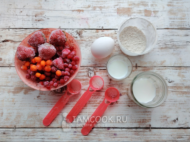 Собрать по списку продукты для ягодного флана. Ягоды можно использовать замороженные, предварительно дать им оттаять, сок слить. Масло вынуть из холодильника заранее, оно должно быть комнатной температуры.