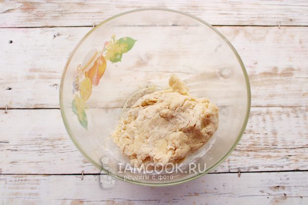 Собрать тесто в комок, долго не месить. Затянуть миску пленкой и убрать на полчаса в холодильник.