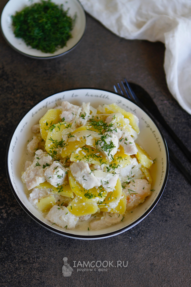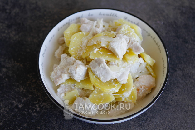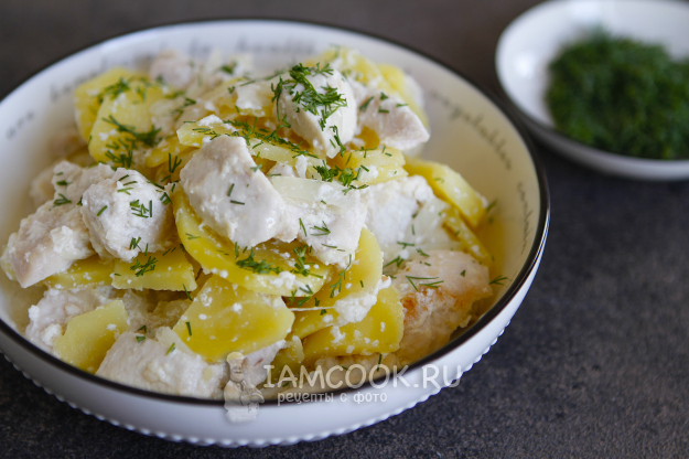 Готово. Филе курицы получилось сочным, а картошка - очень мягкой. Деткам это блюдо очень понравилось. Актуально блюдо будет и для диетического стола.