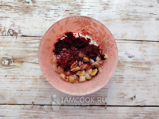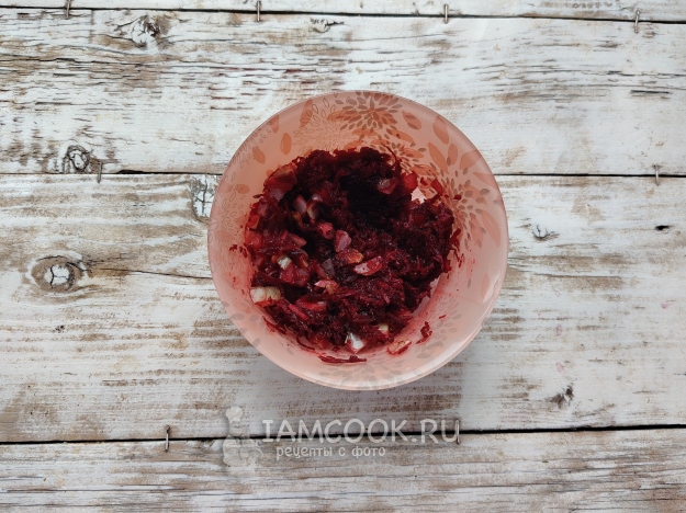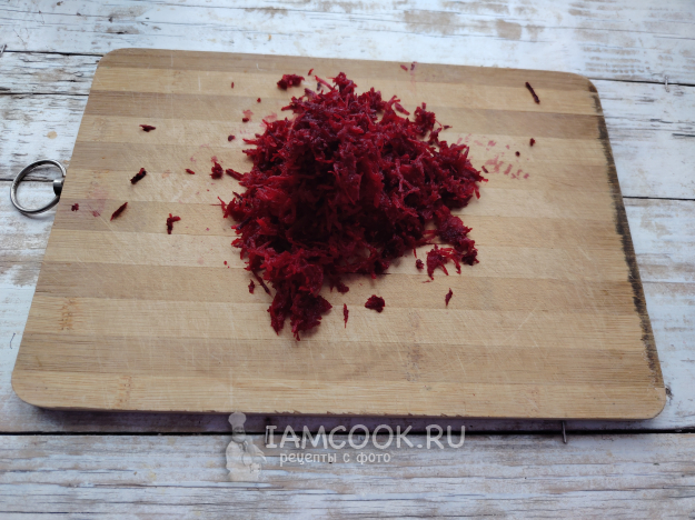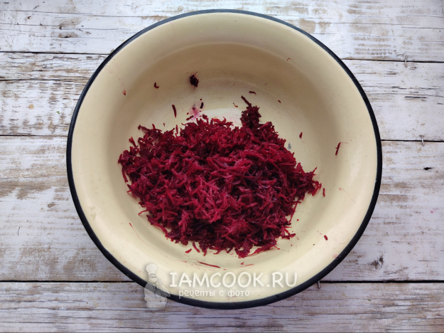 Приготовить начинку. Свеклу почистить, натереть на терке.