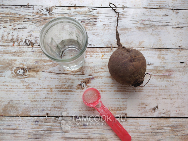 Собрать продукты для приготовления свекольного чая. По желанию сахар можно заменить медом или совсем исключить его из состава ингредиентов.