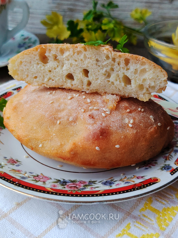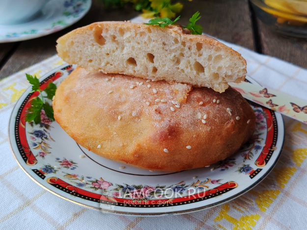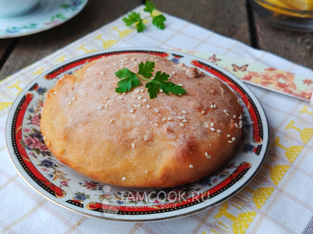 Тесто обмять и переложить в смазанную маслом форму. Оставить в тепле еще на 15 минут для подъема заготовки. Сверху можно присыпать кунжутом. Выпекать при температуре 180 градусов около получаса.