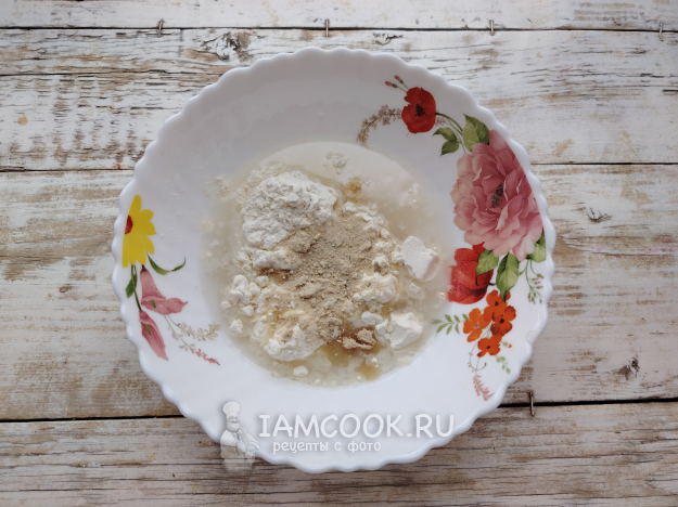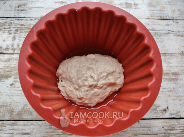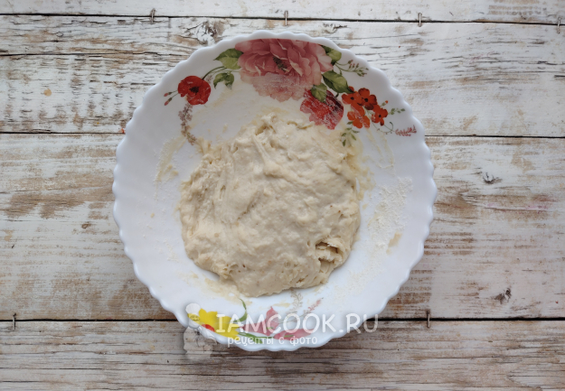 Замесить тесто: не нужно его делать слишком крутым, оно должно дышать в миске. Муку добавлять частями и промешивать массу.