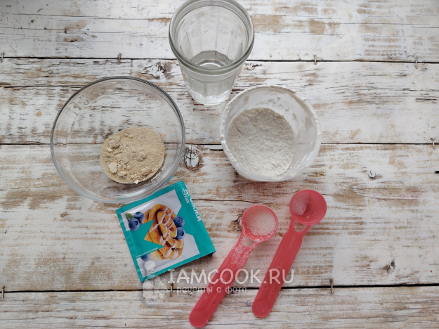 Собрать по списку продукты для хлеба из муки топинамбура (с пшеничной). Муку топинамбура можно приобрести готовую или сделать самостоятельно, подсушив тертые на мелкой терке клубни овоща и измельчив их в кофемолке.