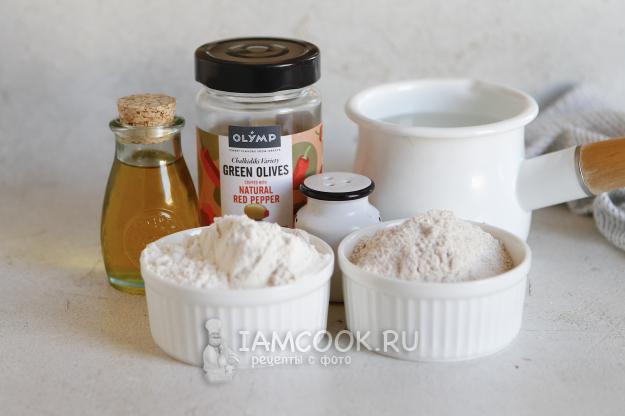Соберите все ингредиенты по списку и приступим к приготовлению хлеба на закваске с оливками.
