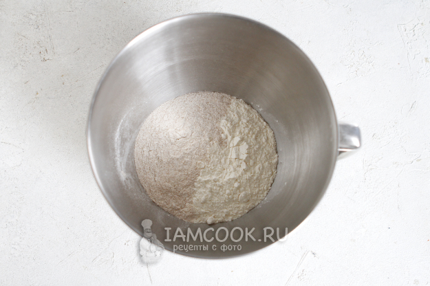 Подготовьте два вида муки: пшеничную в/с и цельнозерновую.