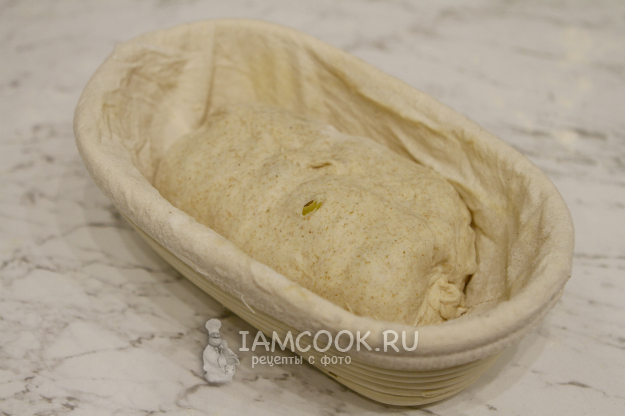 Если у вас есть расстоечная корзина, выложите в нее заготовку швом вверх. Прикройте корзину полотенцем или пищевой пленкой и уберите заготовку в холодильник на 8-10 часов.
